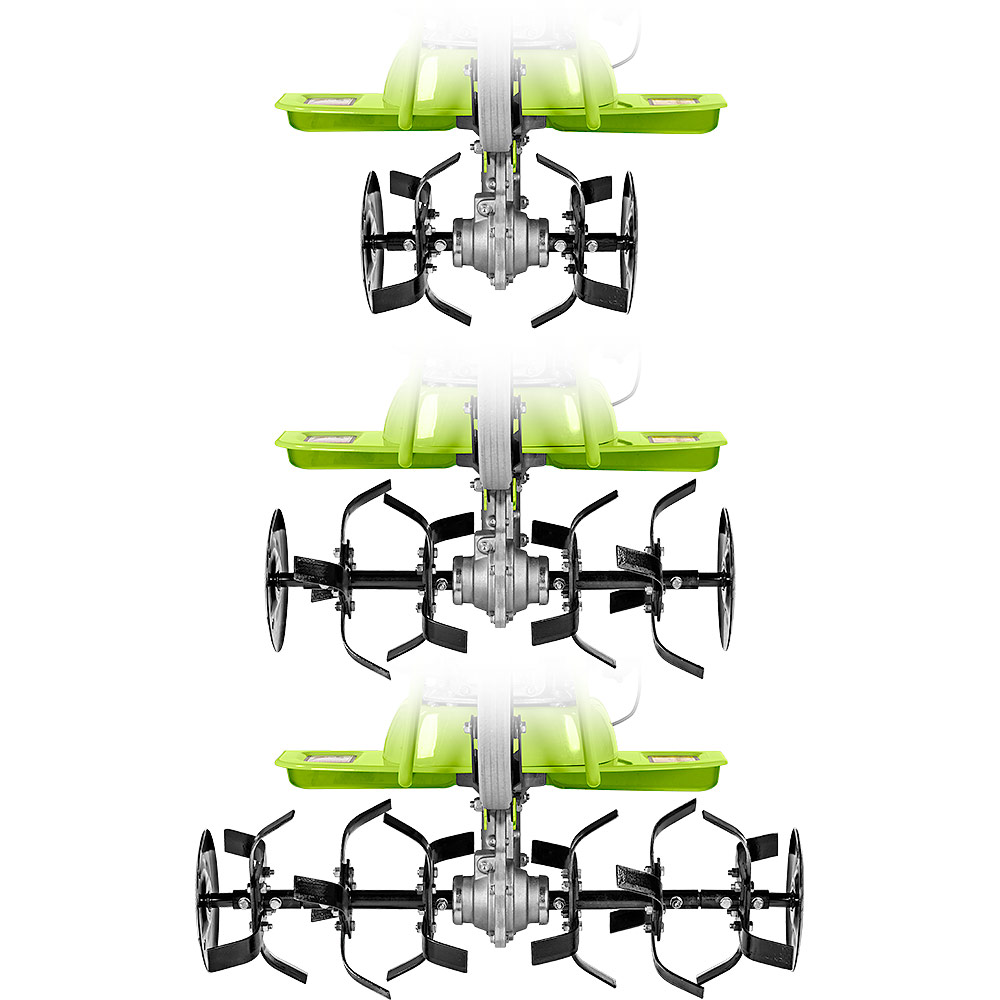 Le guidon est réglable en hauteur et en déport sans outil, ce qui facilite le travail près des haies, bordures ou sous des branches. Les fraises et disques latéraux robustes permettent de travailler aussi bien les terrains durs que les sols meubles.